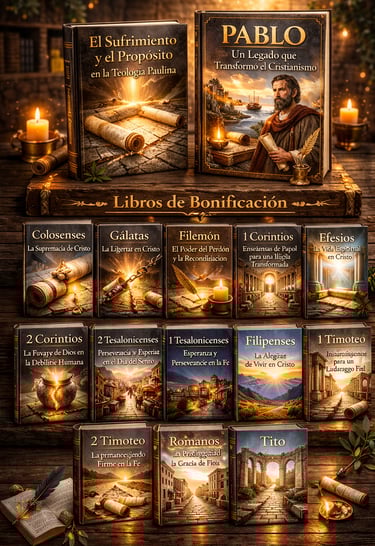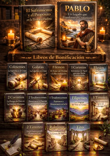 🎁 BONO 3: 2 Coríntios- La Fuerza de Dios en la Debilidad Humana 🎁 BONO 4: Gálatas – La Libertad en Cristo: 🎁 BONO 5: Efesios: La Vida Espiritual en Cristo 🎁 BONO 6: Filipenses - La Alegría de Vivir en Cristo 🎁 BONO 7: Colossenses — La Supremacía de Cristo 🎁 BONO 8: 1 Tesalonicenses- Esperanza y Perseverancia en la Fe 🎁 BONO 9: 2 Tesalonicenses- Perseverancia y Esperanza en el Día del Señor 🎁 BONO 10: 1 Timoteo Instrucciones para un Liderazgo Fiel 🎁 BONO 11: 2 Timoteo – Permaneciendo Firme en la Fe 🎁 BONO 12: Tito – Liderazgo y Vida Cristiana Saludable 🎁 BONO 13: Filemón – El Poder del Perdón y la Reconciliación